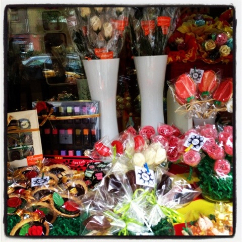 Doncs si, efestiviwonder, les hem trobat de xocolata i de tots els colors!!!! Quina passada! Realment tenia la sensació d’estar al “garden”, però Disfrutessen és una pastisseria, situada al C/Nàpols núm. 318 (tocant amb Indústria), poc habitual, de pas sigui dit :-).