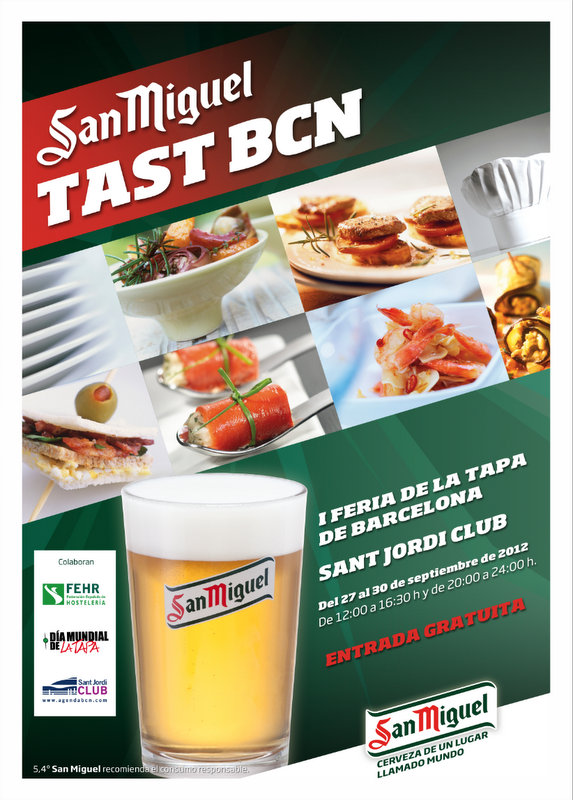 Doncs segons podeu apreciar al cartell que us adjuntem, la ciutat de Barcelona acull des d’ahir 27 de setembre fins al dia 30 de setembre la I Fira de la Tapa de Barcelona. El lloc escollit és el Sant Jordi Club, concretament la Sala Barcelona 92, annexa al Palau Sant Jordi (horari: de 12h a 16:30h i de 20h a 24h). L’entrada és gratuïta i dins es poden adquirir els tickets per a les tapes i per a la cervesa (1,5 euro per unitat de cada cosa). En aquesta Fira hi participaran els restaurants guanyadors de l’any passat de la Ruta San Miguel a Catalunya.