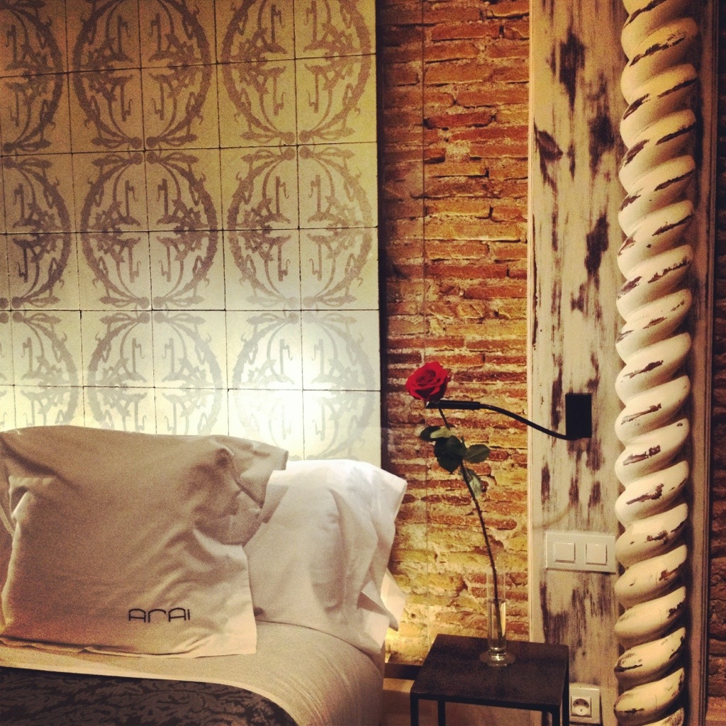 2. Els detalls subtils de les habitacions. Des de la rosa que sembla que leviti a la vora del llit, fins a la Nespresso amagada en “armaris trampa”, passant per l’aprofitament exhaustiu de tots els elements restaurats: rajoles hidràuliques vuitcentistes convertides en les capçaleres dels llits, antigues portes de balcons que ara són les portes dels armaris. I tot això banyat per la llum natural de la que poden presumir totes les estances de l’Arai.