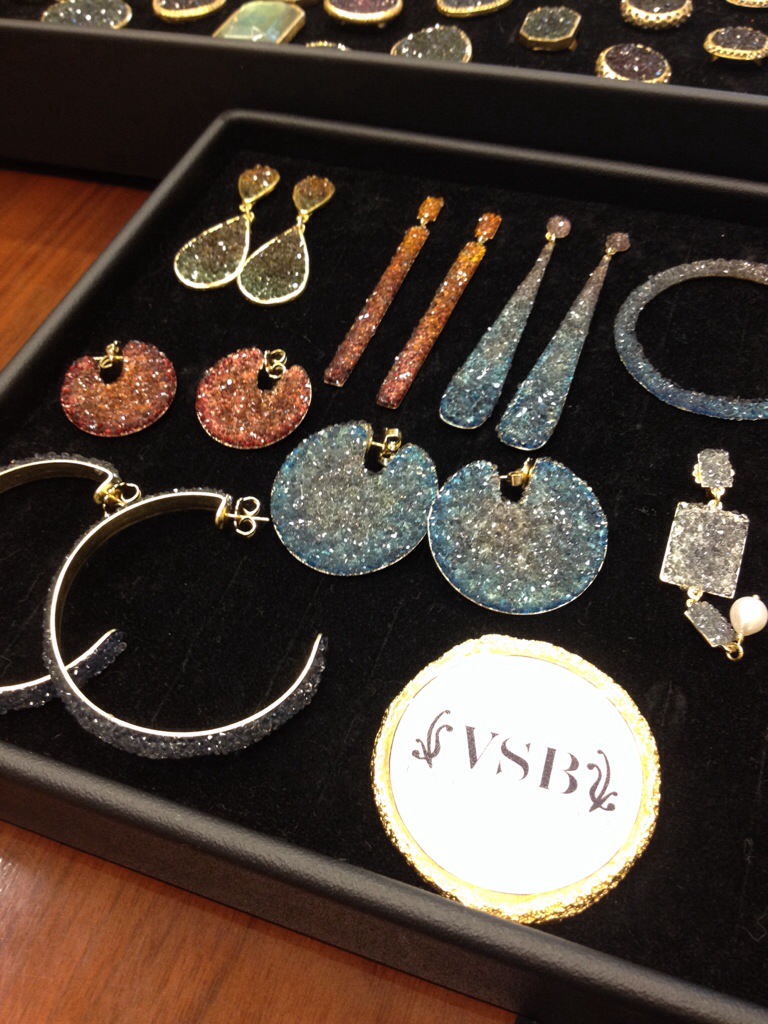 Una de les característiques principals de les joies de VSB és el material amb què principalment treballen: el cristall Swarovski. A aquest li apliquen un tractament i uns processos per tal d’aconseguir l’efecte de geoda desitjat pels dissenyadors. D’aquesta manera les joies de VSB brillen amb llum pròpia.