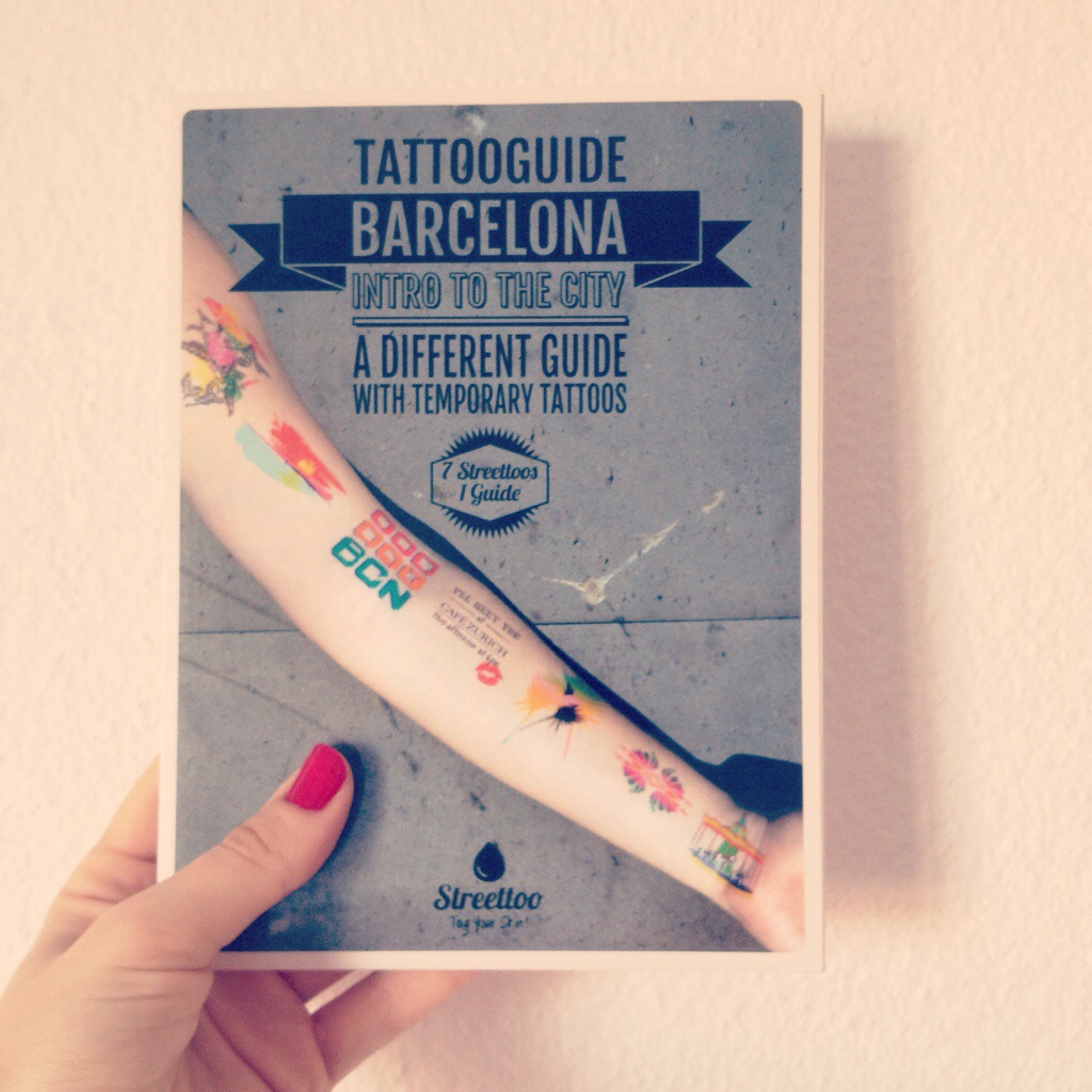 La Tattooguide de Barcelona (12 €) conté 7 streettoos i un plànol de Barcelona que conté alguns “tips”, “musts” i “coses a evitar” (a més d’algunes frases en català per a que els guiris sapiguin dir alguna cosa més que allò de “sangría, cerveza o caliente, caliente”). Val a dir que 4 dels 7 tattoos han estat dissenyats per Streettoo.