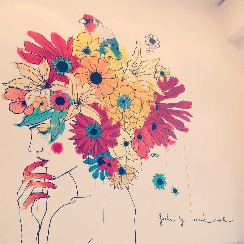Entrant a mà dreta i donant-vos la benvinguda a aquest temple de menjar sà i orgànic trobareu aquest increïble mural d’en Conrat Roset: sens dubte una oda a la mare naturalesa amb la majestuositat colorista que defineix l’obra d’aquest jove artista català de reconegut prestigi.