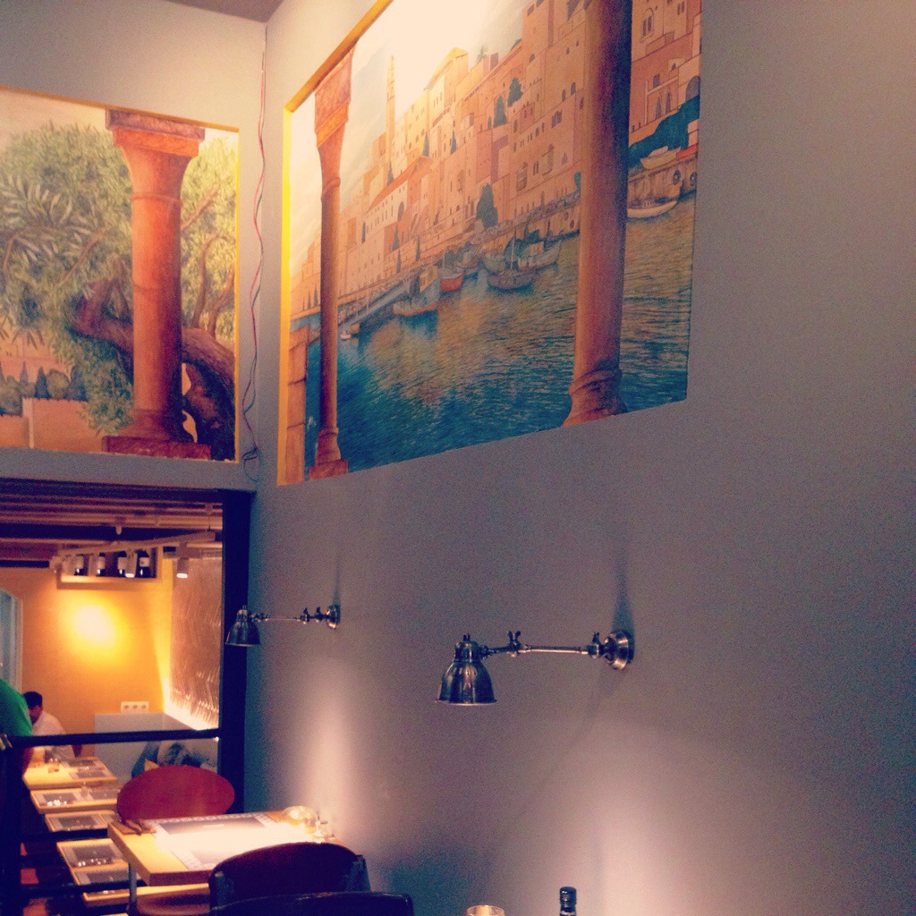 Pel que fa al local dir-vos que, si bé no és nou al barri (fa quatre anys que hi és) sí que ho són les seves reformes. Així fa cosa de quatre mesos van decidir “rentar-li la cara” i donar-li un toc estèticament més modern, tot conservant alguns dels elements de la seva antiga decoració (com per exemple, les obres artístiques de les parets que ens traslladen a les ciutats de Jerusalem, Natzaret, Acre i Jaffa).