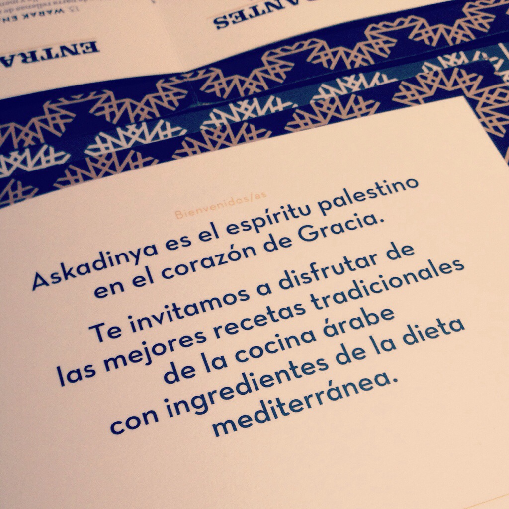 La proposta d’avui gira entorn de la cuina palestina. I on podem trobar cuina palestina a Barcelona? Doncs al restaurant Askadinya, situat al Carrer Verdi, número 28 (Gràcia). Un pla diferent per a paladars inquiets ;-).