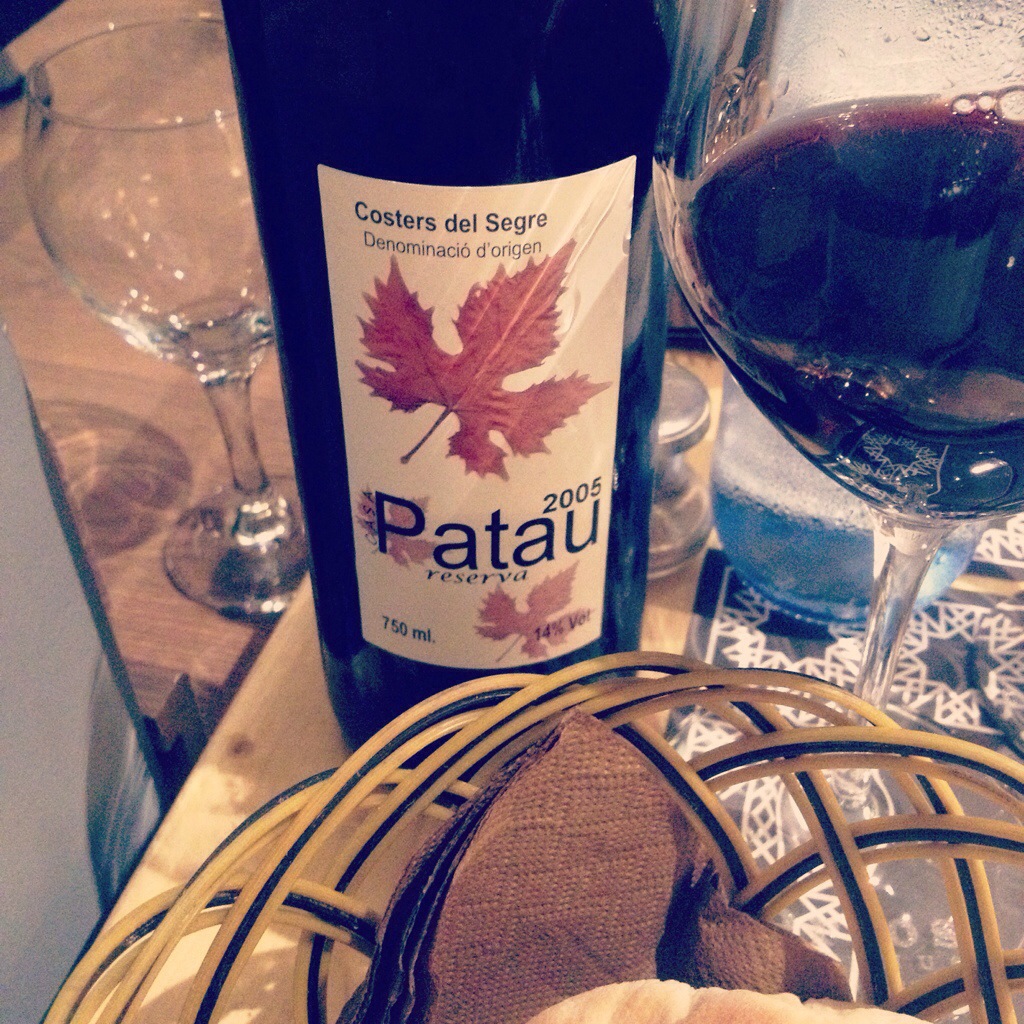 Ah, i els vins, me n’oblidava! Tenen una bona selecció de vins catalans i nacionals. El que veieu a la fotografia és un Costers del Segre (D.O), del Celler Casa Patau (Reserva, 2005 – 23 mesos en barrica de roure francès, aprox. 16 euros). Aquest celler des de l’any 2001 elabora vins de les seves pròpies vinyes, seguint un procés artesanal, tot respectant el medi, sense aplicar herbicides ni adobs químics. Mooooolt correcte (tan o més que un Rioja…bé, ça c’est à voir…) ;-).