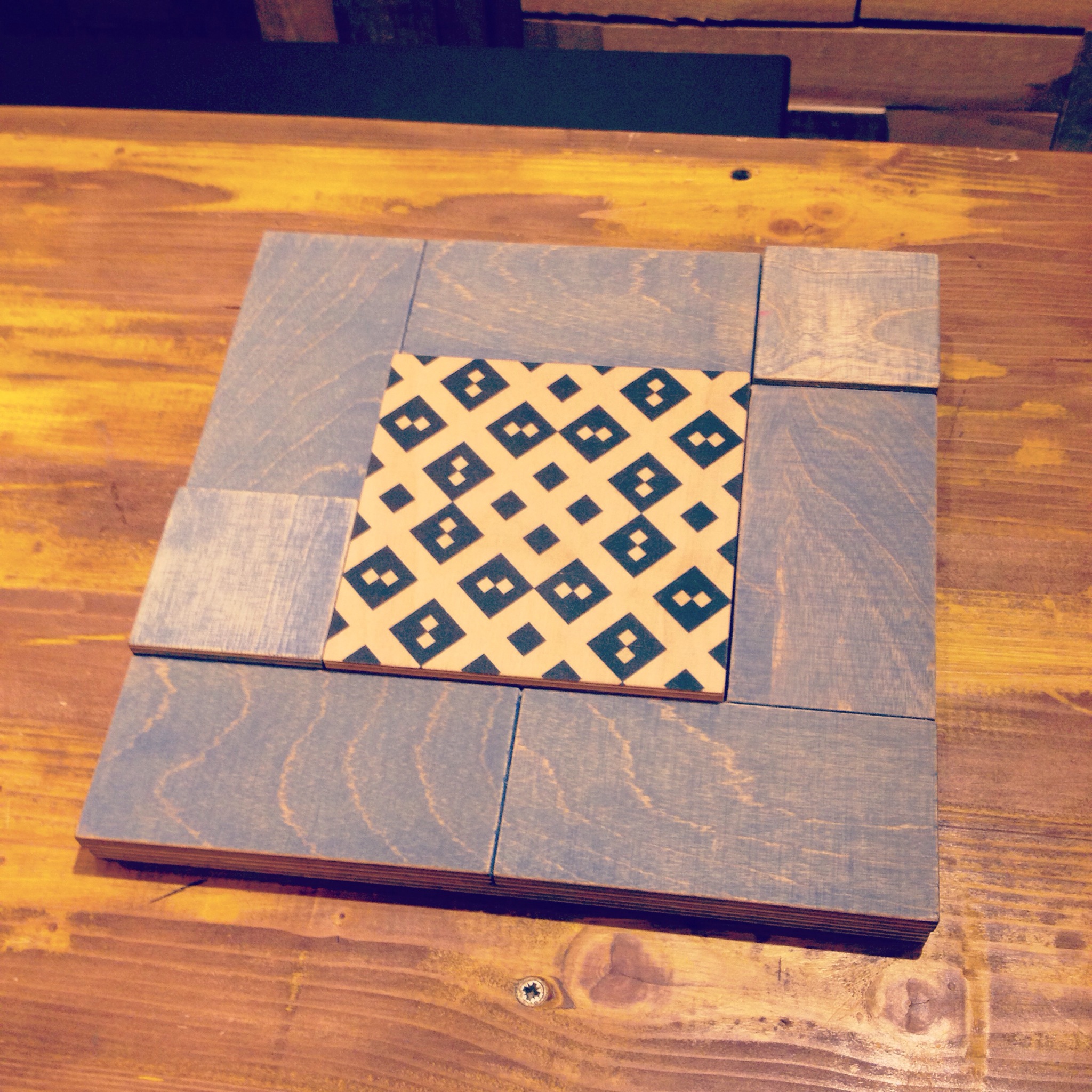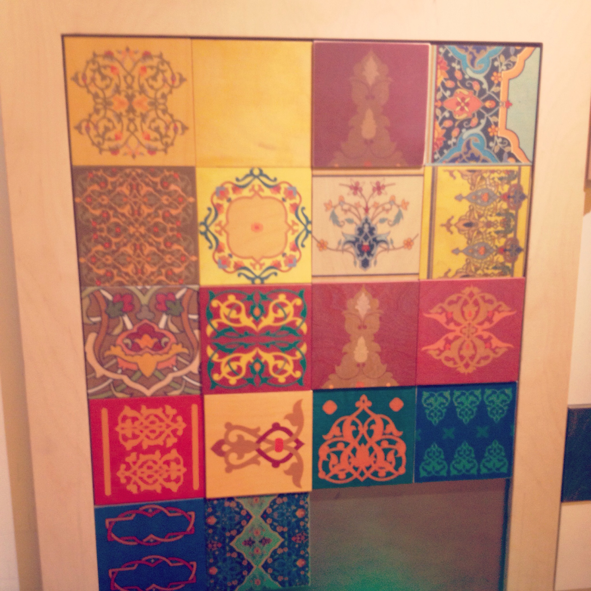 A la següent fotografía veureu la meva adquisició, consistent en un marc bàsic amb una peça amb motius geomètrics (20 €). Vaig tenir un coup de foudre… I el millor de tot és que si vull anar variant el fons, doncs puc!! Compro una altra peça i llestos! Sense dubte si teniu un compromís amb algú a qui li agradi la decoració i l’interiorisme és el regal ideal. Els marcs que poden contenir fins a 4 peces mitjanes de fusta són també un bon regal d’aniversari.