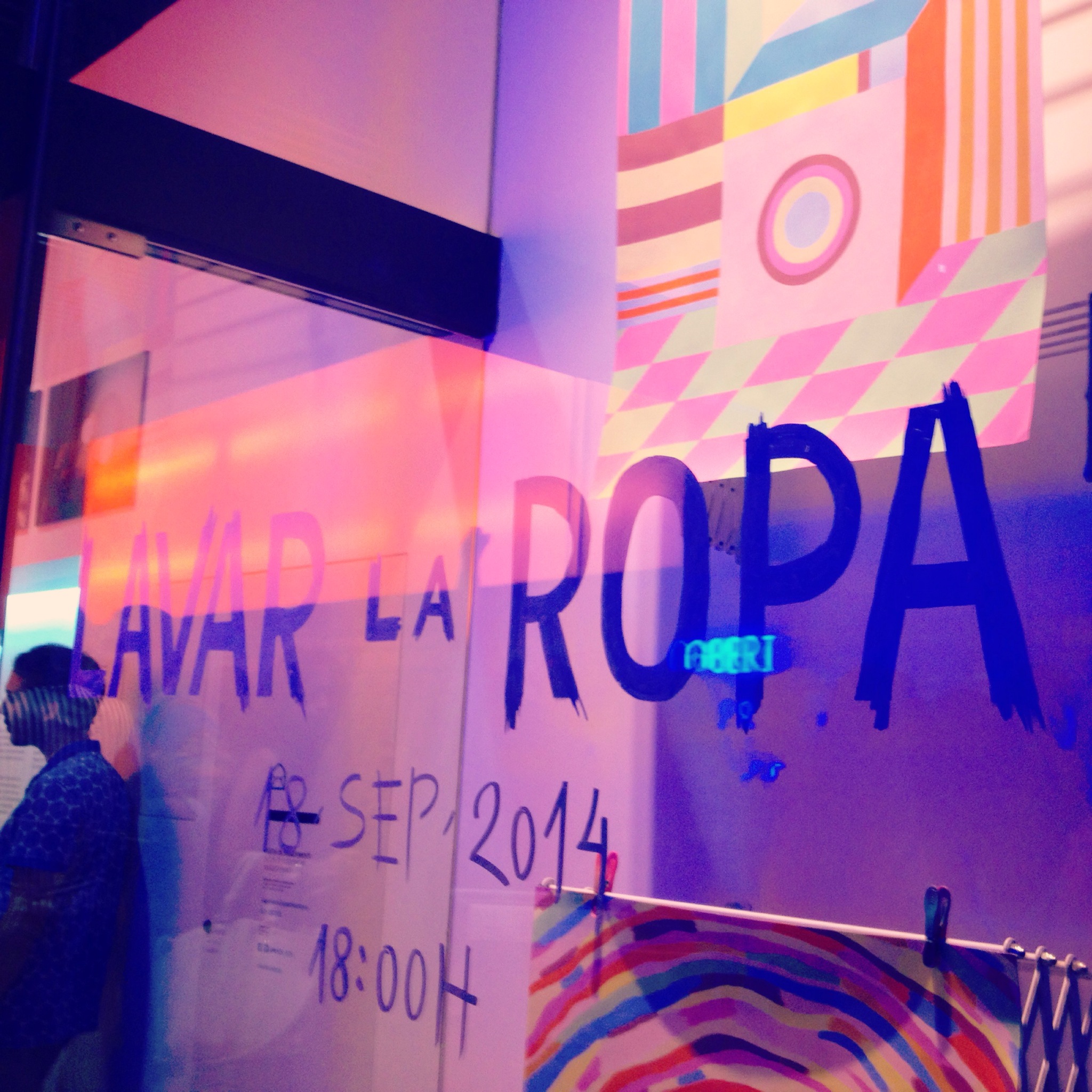 Splash és la bugaderia d’autoservei ecofriendly que aquesta tarda ha acollit l’exposició efímeraLavar la Ropa” organitzada per la gent de Hop3fully. Aquesta plataforma té com a finalitat donar una empenta als artistes emergents. Els espais no són gaire “típics” ;-). Home, ja em direu si no és original estar observant l’obra d’un artista mentre sents com centrifuga una rentadora gegant. Els artistes que han exposat la seva obra han estat: