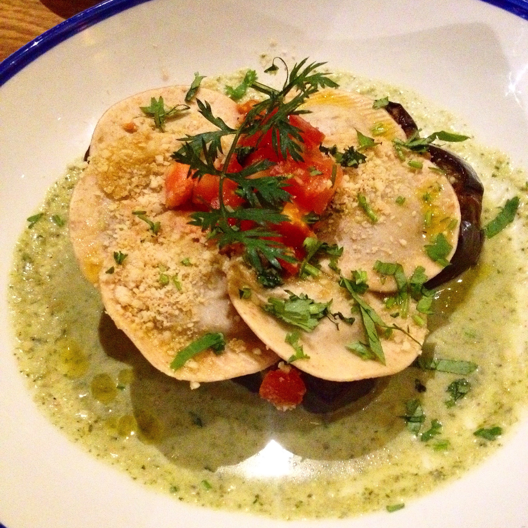 3) Green Power Raviolo (12,50 €): albergínies al forn, raviolos d’espinacs, tofu, xampinyons, ricotta d’anacards i salsa verda. Vaig gaudir molt d’aquest plat: això de provar ingredients nous és sempre una festa! 🙂