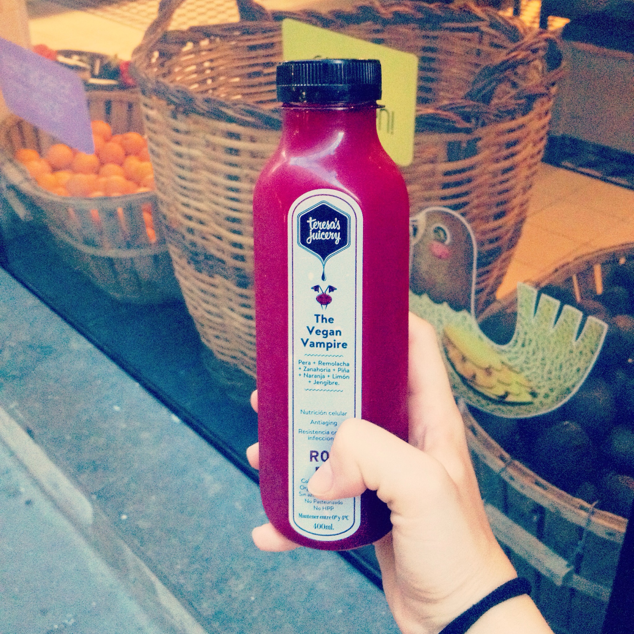 Jo de moment he tastat “The Vegan Vampire” (sí, em va fer gràcia el nom). Els ingredients són: pera, remolatxa, pastanaga, pinya, taronja, llimona i gingebre. Les propietats d’aquest suc són: 1) nutrició cel·lular; 2) antiaging -una comença a tenir una edat…-; i 3) resistència contra les infeccions.