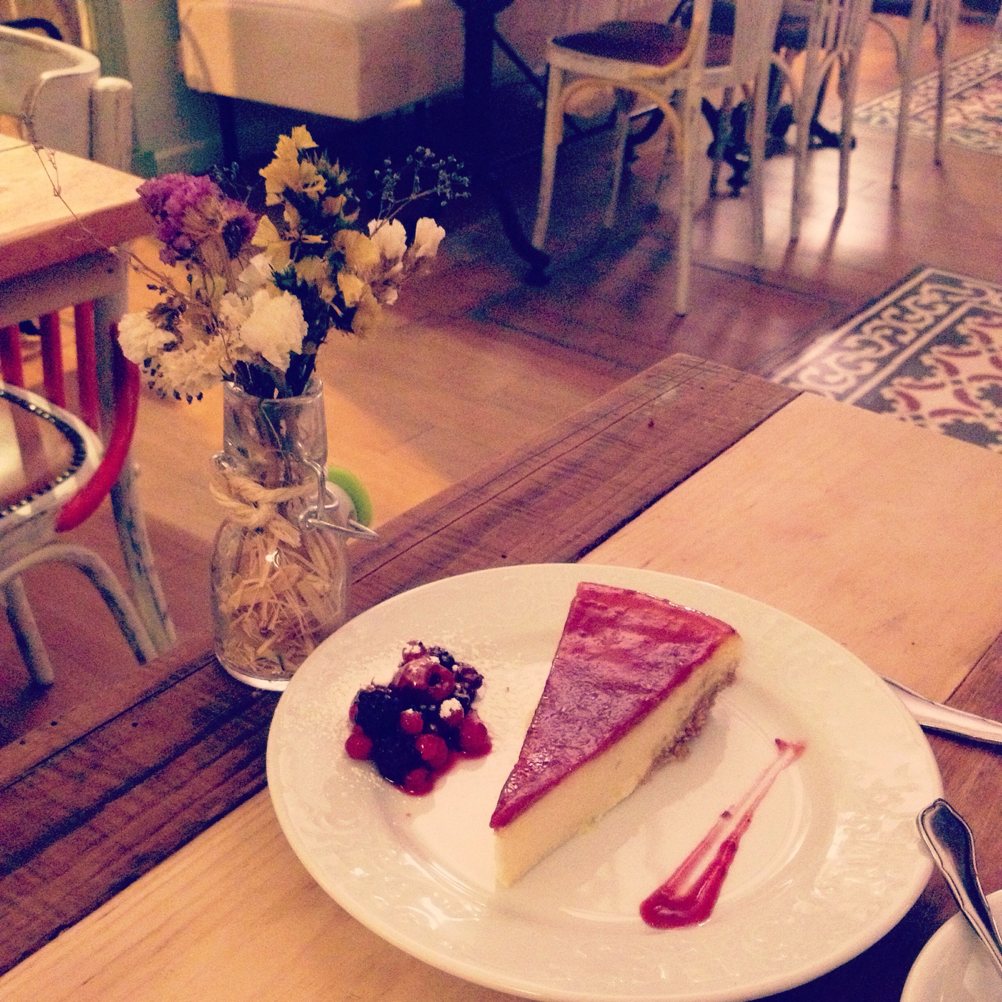 I finalment…les postres. Tiramisú i cheescake (la casa por la ventana, som-hi! :-)): em van encantar, especialment el tiramisú: dels millors que he tastat recentment. El detall decoratiu -veure foto- li va fer pujar punts en 5 segons ;-). El cheescake també estava força bo (però res a fer davant del tiramisú).