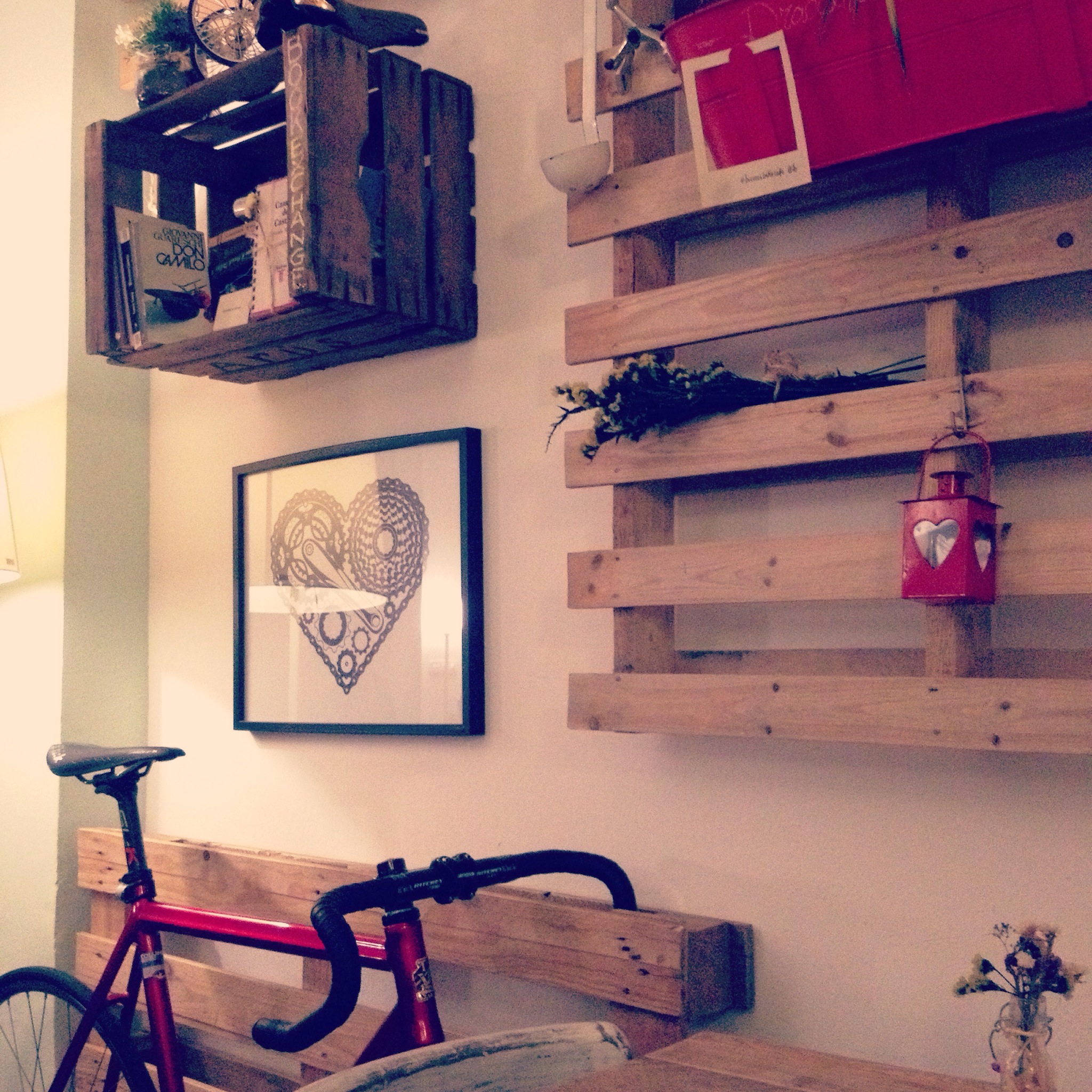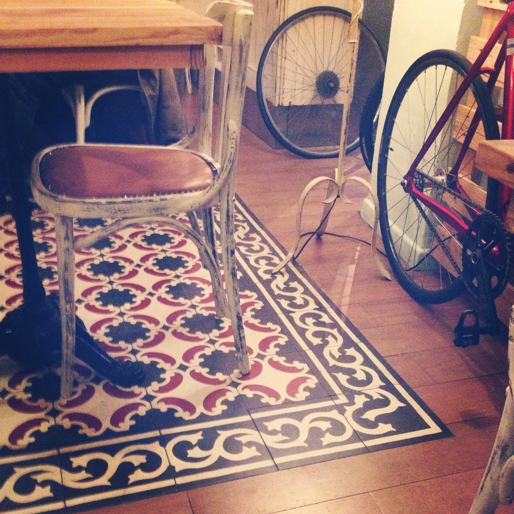 Pel que fa al local dir-vos que el vaig trobar encantador. La combinació del mosaic hidràulic + caixes de fusta penjades a la paret (una d’elles serveix per fer book exchange) i les bicis i/o trossos d’elles li donen un aspecte fresc, agradable i lluminós.
