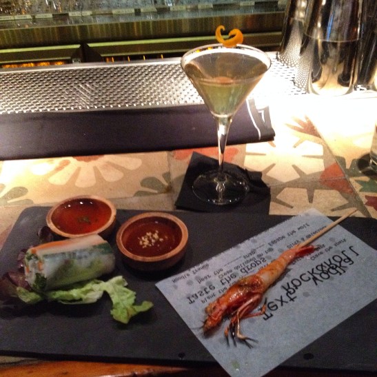 2. Rotlle nem de tofu i verdures (amb salsa nuoc cham + salsa hoisin) / Gamba perfumada als aromes tailandesos + Yakusa Dry (vodka Stolichnaya, sake, cartoixa vermell i mirin)