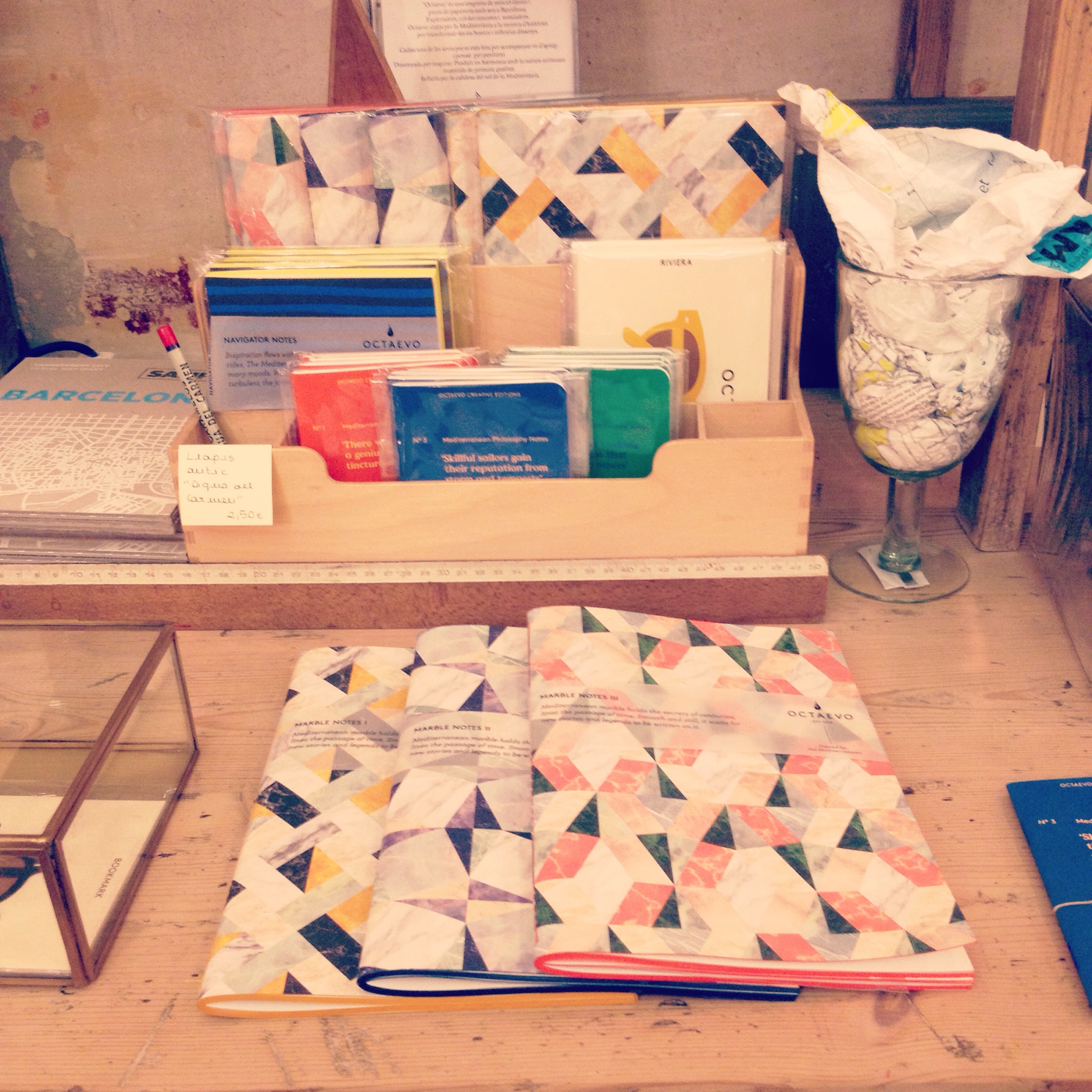 També hi podem trobar les llibretes de la casa Octaevo (molt conegudes per les seves tapes simulant el marbre).