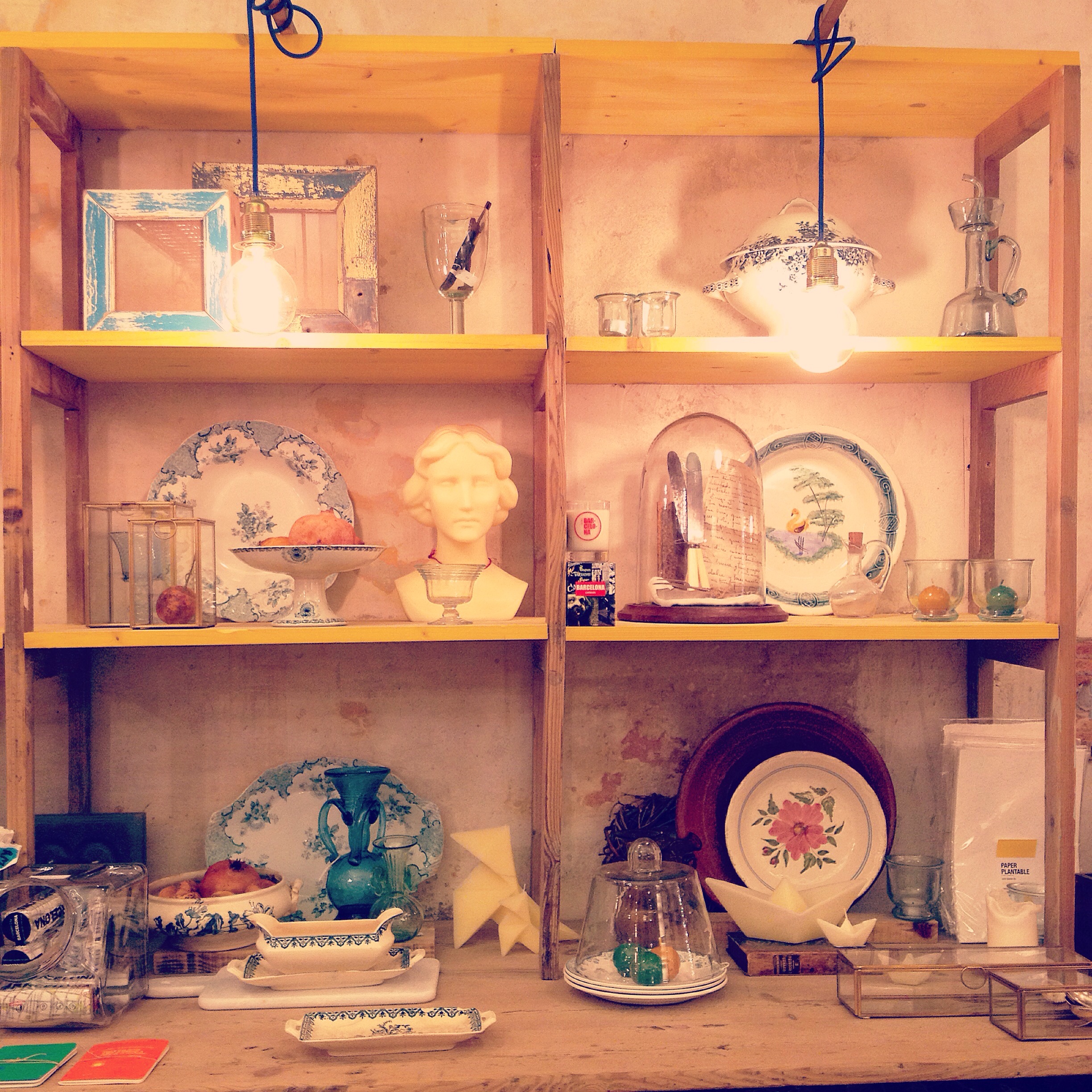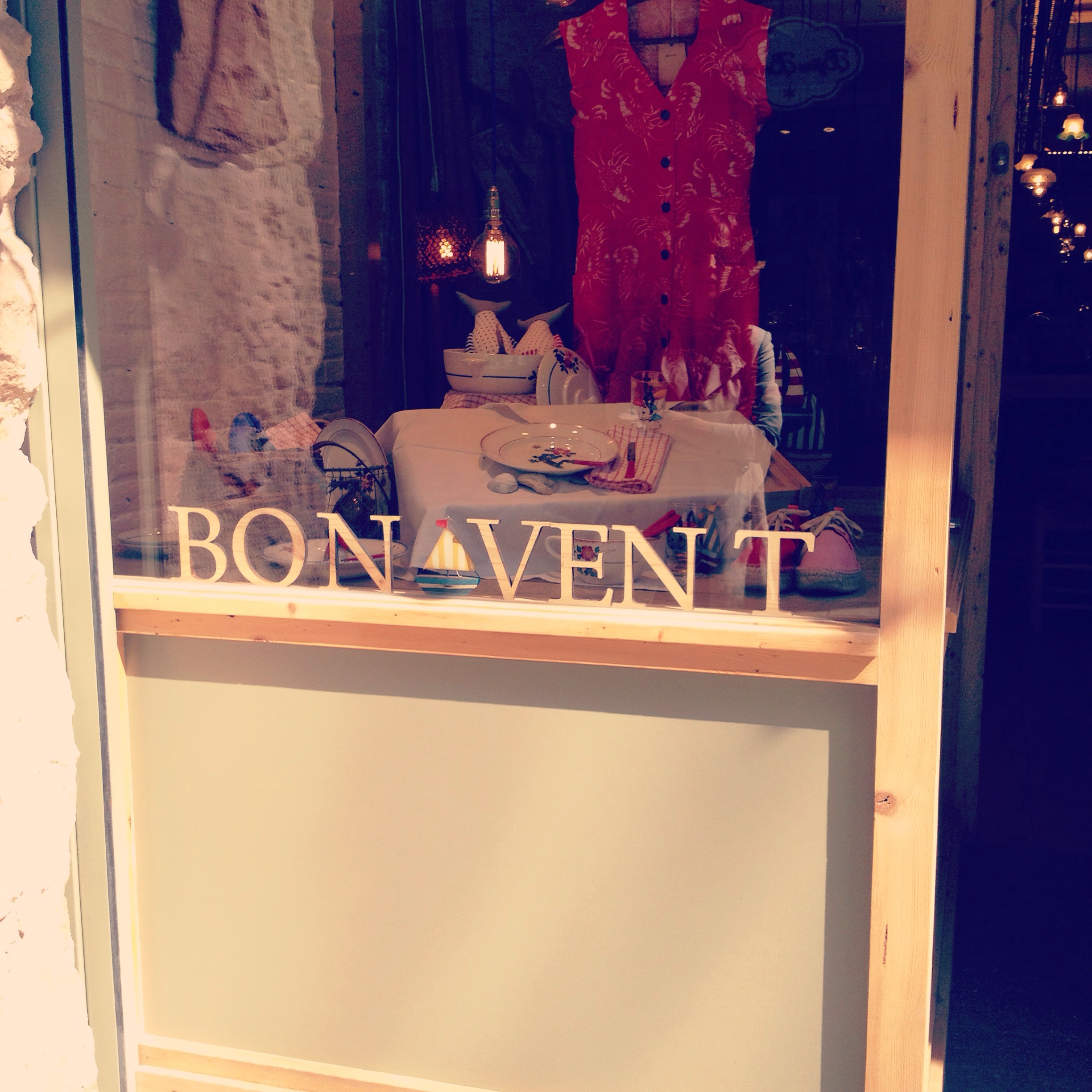 Tot i estar ubicada en un dels carrers més transitats del Born (prop de la sortida de metro de Jaume I) i de portar més d’un any oberta no hi havia entrat mai. Suposo que l’aparador, disposat amb un gust exquisit va fer que tingués ganes d’entrar. A l’aparador hi havia una mescla de porcellana, teixits de coses per a casa, però també un vestit vermell molt estiuenc… Vaig acabar posant-hi els peus, evidentment.