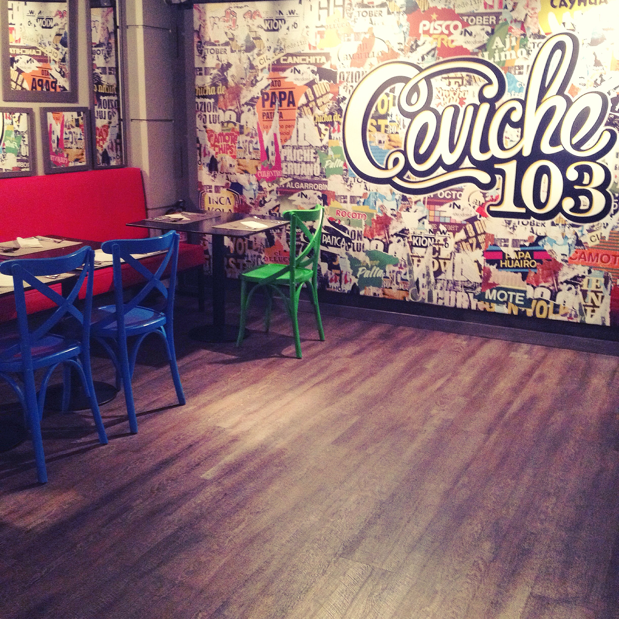 El nom del local no té cap mena de misteri: el número 103 correspon al número del carrer Londres on es localitza el restaurant. I “ceviche” és més que evident… :-): és el plat estrella del local. El que no sabia és que etimològicament “cebiche”prové de la paraula àrab silbech que vol dir “menjar àcid”. Altres gastrònoms sostenen que la paraula ve de “ceba” o de “cebo” -en castellà-. Sigui com sigui, és l’especialitat de la casa de la que n’estan més orgullosos.