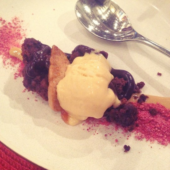 7. Sospir de lúcuma (brownie, esponja de cafè i pols de gerds)