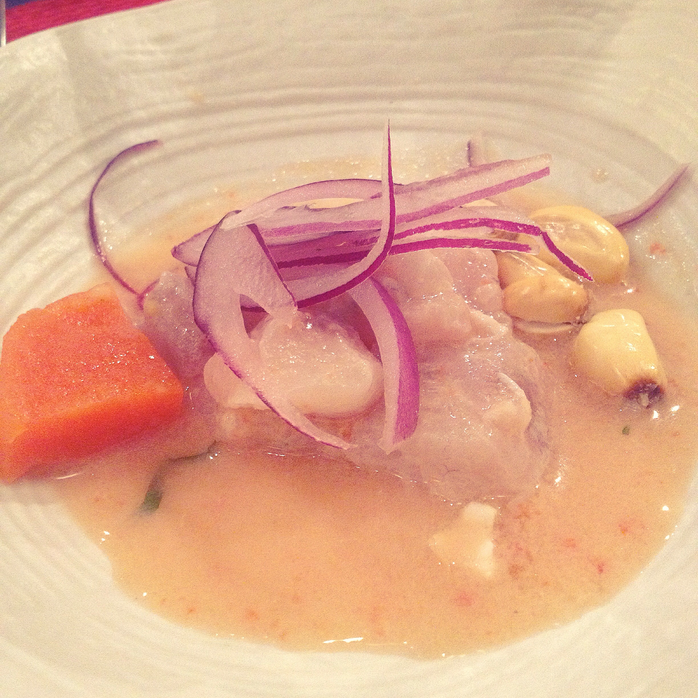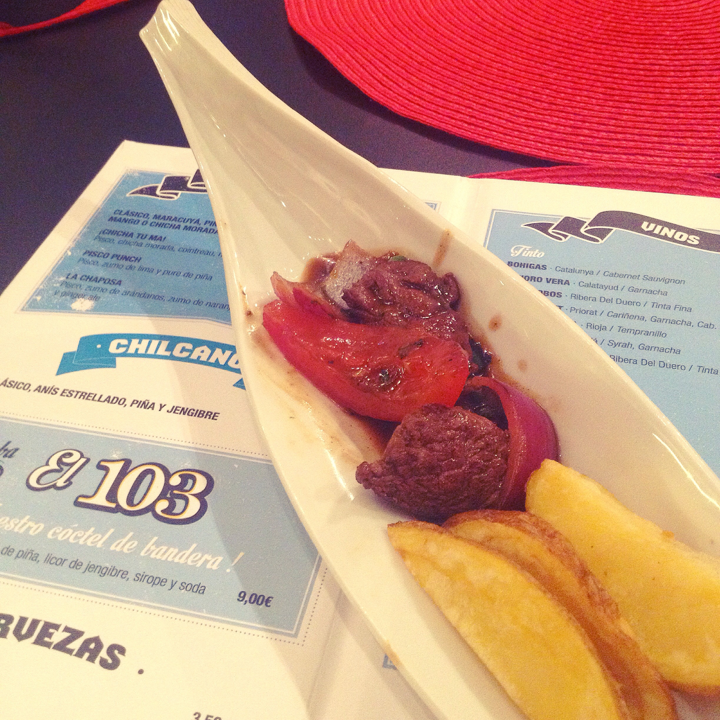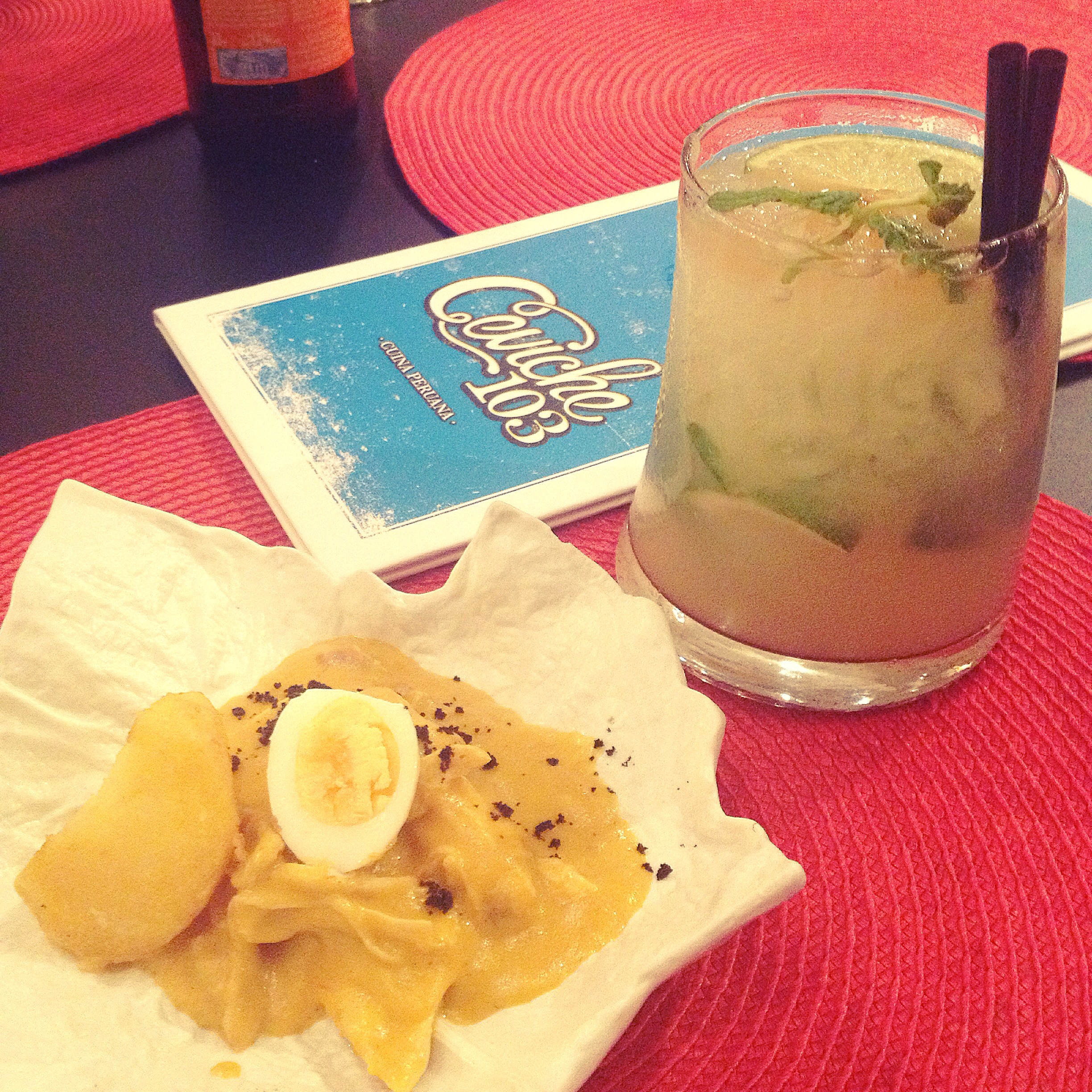 Davant d’una carta extensíssima i de la dificultat sobrevinguda d’haver d’escollir uns quants plats que fossin els més representatius de la cuina que ofereixen a Ceviche 103, vam decidir (La Bcn que me gusta, La Meva Barcelona, Y sigo en la cocina i l’Albert) que el més pràctic era escollir el Menú Degustació (40 € -no estan inclosos els cafès, ni si vols un segon pisco sour, aviso): en un local com aquest és la manera de viure una experiència gastronòmica més completa, ja que cada plat ve acompanyat de la seva corresponent explicació.