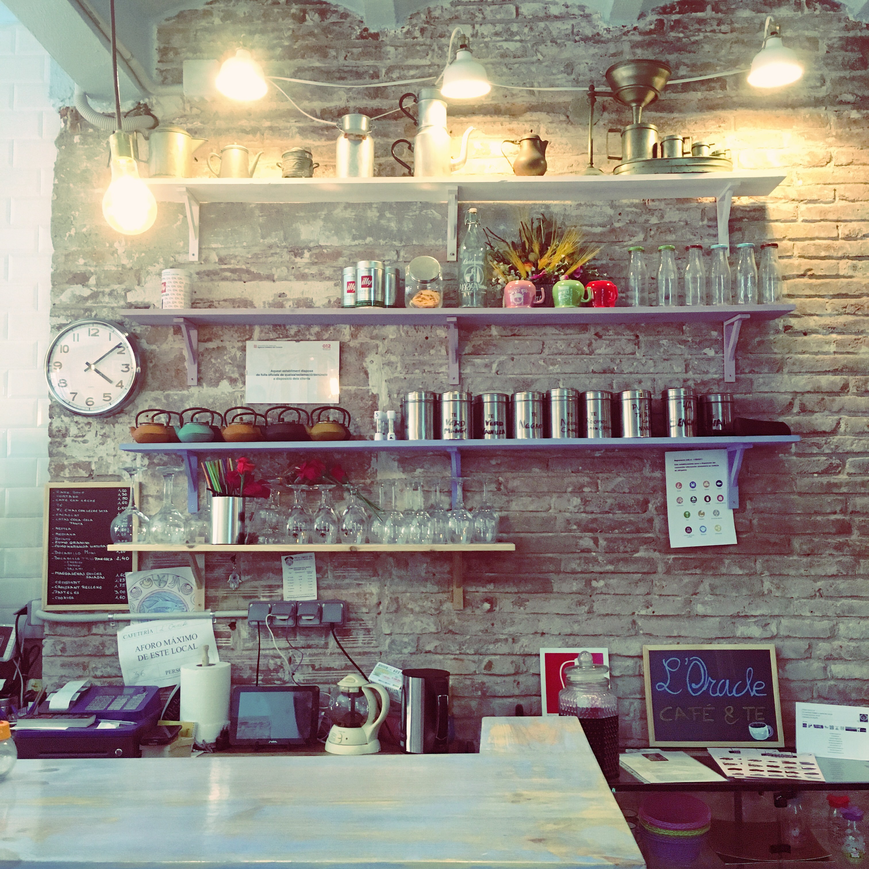 L’Oracle és una cafeteria-teteria que porta l’Eva, una emprenedora amb una energia desbordant i una alegria contagiosa. La cafeteria té tres parts diferenciades: l’entrada amb la barra per a fer el cafetonet ràpid, la part central on hi ha vàries taules (totes fetes per l’Eva, qui té una traça i gust increïble per l’interiorisme, com podreu veure si l’aneu a veure) i, finalment, la tercera part amb un sofà que sembla que sigui la saleta d’estar, amb taules baixes que conviden a quedar-s’hi hores xerrant.