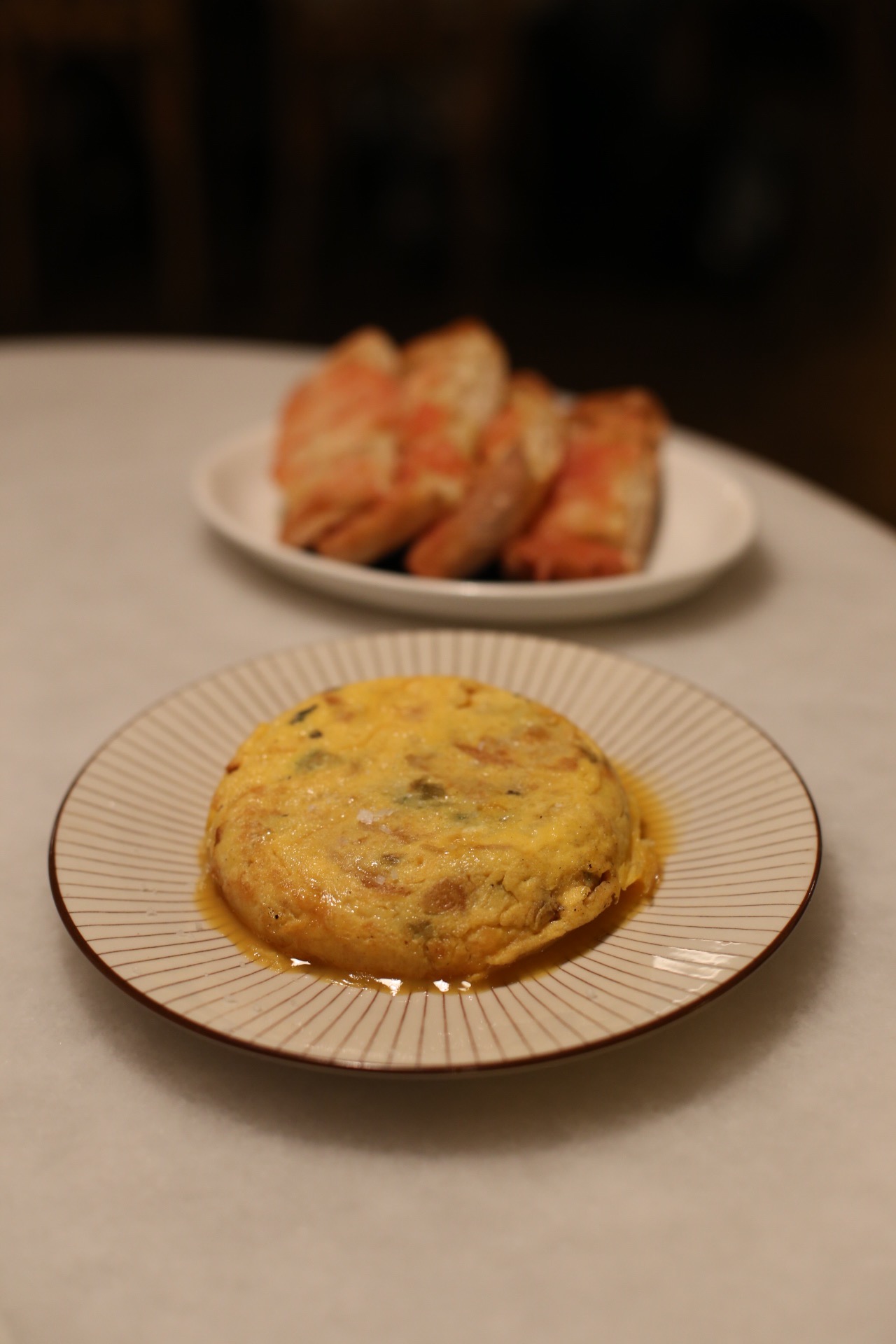 La truita de bacallà, pebrot verd i alls tendres (9,50 €) em va agradar molt tot i que no sóc de les que s’emocionen per les truites que tenen aquest punt tan cru. Amb qüestió de truites jo crec que tots som molt fidels a les truites que hem menjat a casa i si la teva mare l’ha preparada sempre d’una manera doncs tindràs certa tendència (per allò de ser lleial a la mare) a voler-les al mateix punt de cocció. Deixant de banda aquesta reflexió sociològica #depasucatamboli he de dir que mai n’havia tastat una amb aquests tres ingredients. Pa amb tomàquet que no falti.