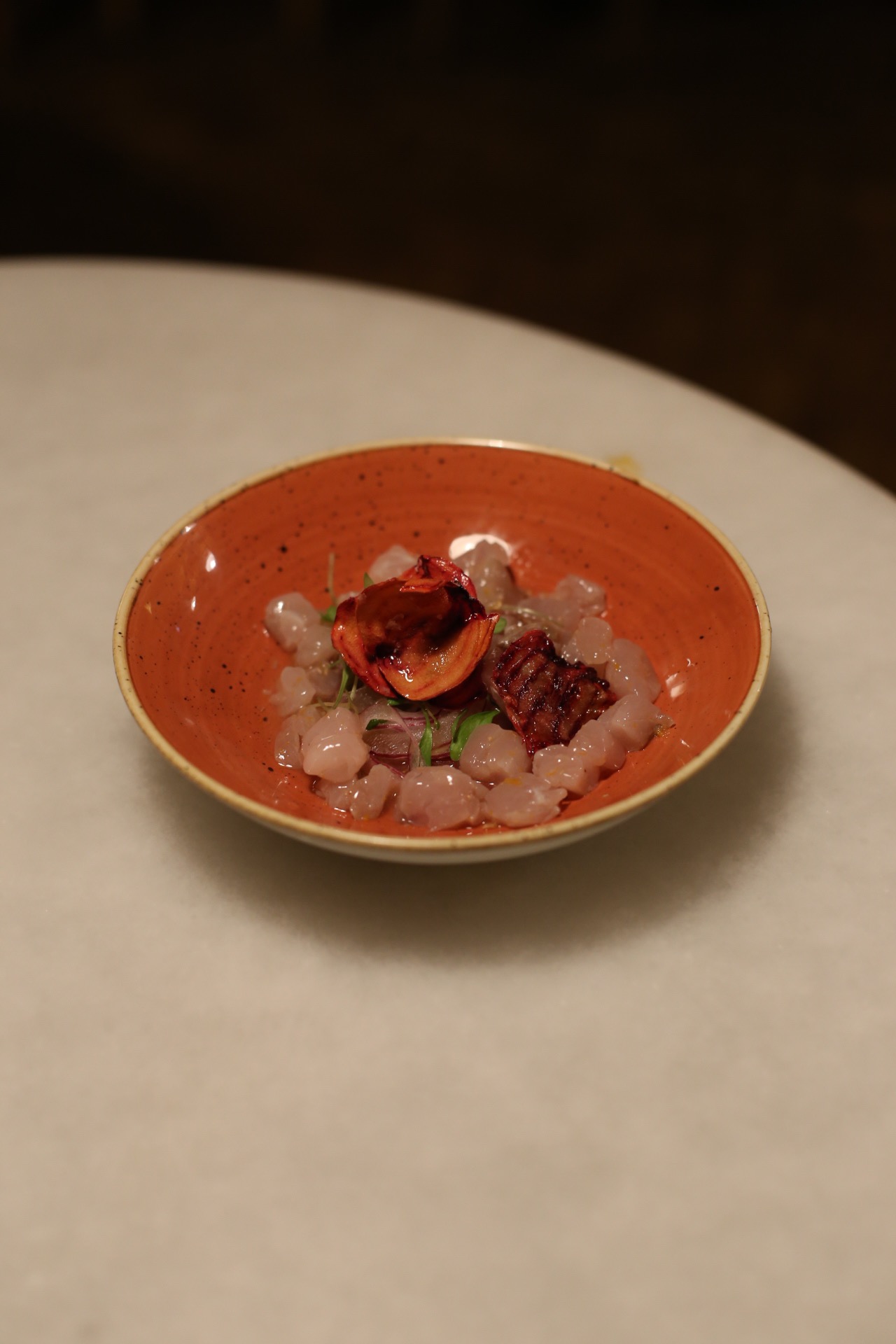 Anem a parlar de teca. Els vins que van acompanyar els plats que a continuació veureu són: 1) QuintaLuna by Ossian (és l’únic Verdejo que tenen i la veritat és que va ser el que més em va agradar -és aromàtic i té el puntet de densitat adequat-); 2) Cara Nord (de la Conca de Barberà) i 3) Phlox de Vins de Taller.