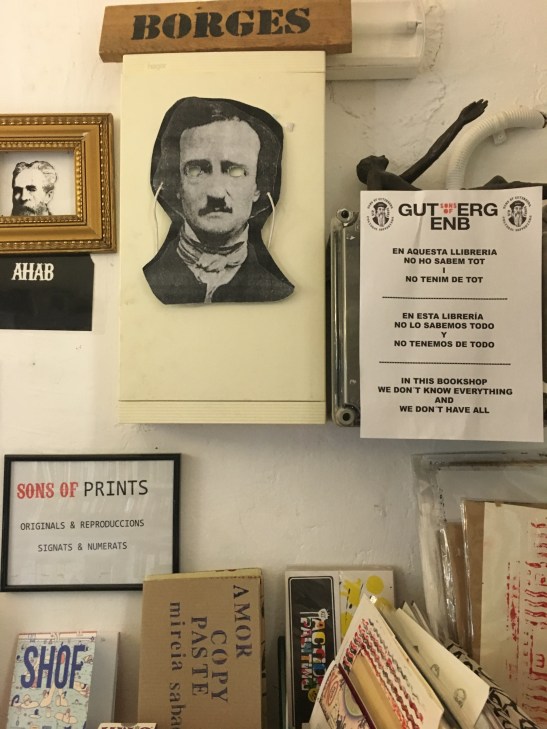 Segueixes rastrejant aquest espai de 8 metres quadrats. A les prestatgeries hi trobes petits conglomerats de llibres ordenats per seccions: “Poesia Gourmet Selection, Selecció de poesia de segona mà”, “Erotica-festiva“, “Literatura Indie, aire fresco para la escena literaria bcnesa“, “Poesia Made in Barna“. Tens la sensació que trobaràs aquell llibre que fa temps estaves buscant. O, qui sap, potser et troba el llibre a tu. Autors clàssics, escriptors emergents. Enmig de tanta ebullició, comences a necessitar el consell del llibreter.
