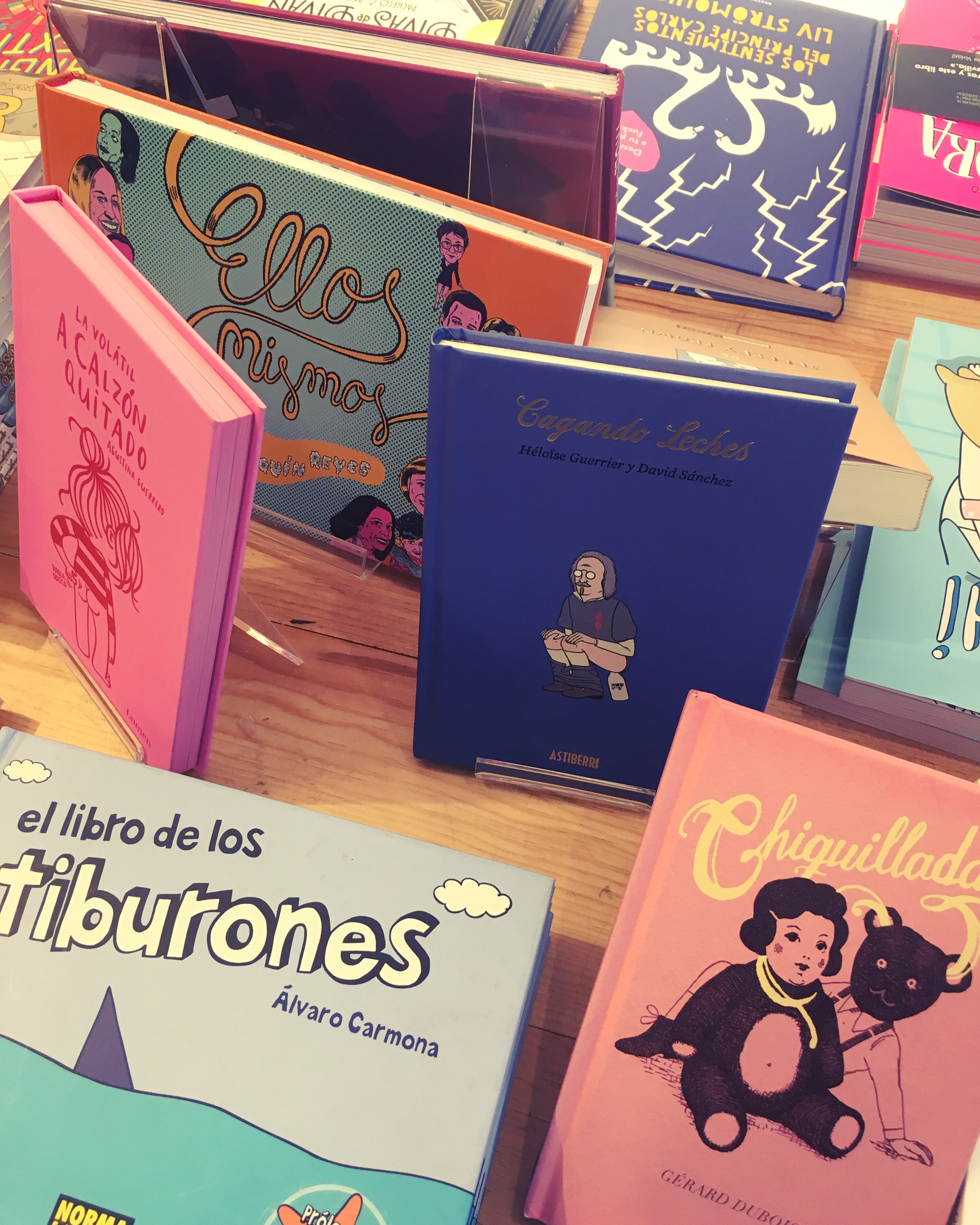 Segons em deia l’Abi, una de les tasques que més temps li porta és la de seleccionar els “articles de regal” i els llibres. Pel que fa als articles de regal està contínuament a la recerca de coses que no tingui cap altra botiga i que no estiguin gaire vistes: des de joguines a articles de papereria, passant per articles de la coneguda marca de Seattle Archie Mc Phee, pins, samarretes, tote-bags… Pel que fa als llibres no treballen amb el sistema de novetats, sinó que poc a poc van elaborant el seu catàleg en funció de l’encaix dels títols, sigui d’editorials d’aquí o estrangeres.